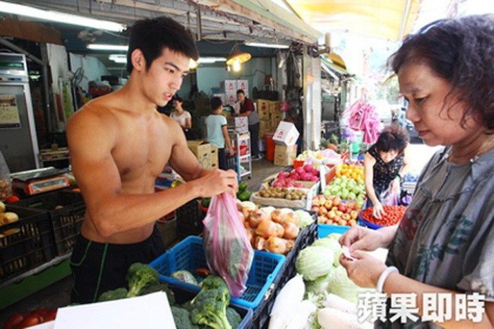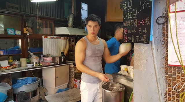 Yi Ten Chen works in a ‘tau fu fa’ (sweet bean curd dessert) shop, and his looks always create a long line. Girls want to get a peek at his amazing body and looks and his fame made this 26-year-old a model part-time as well.