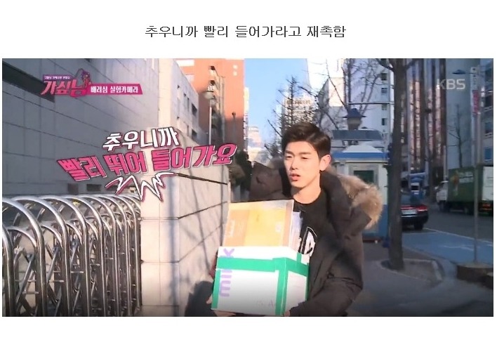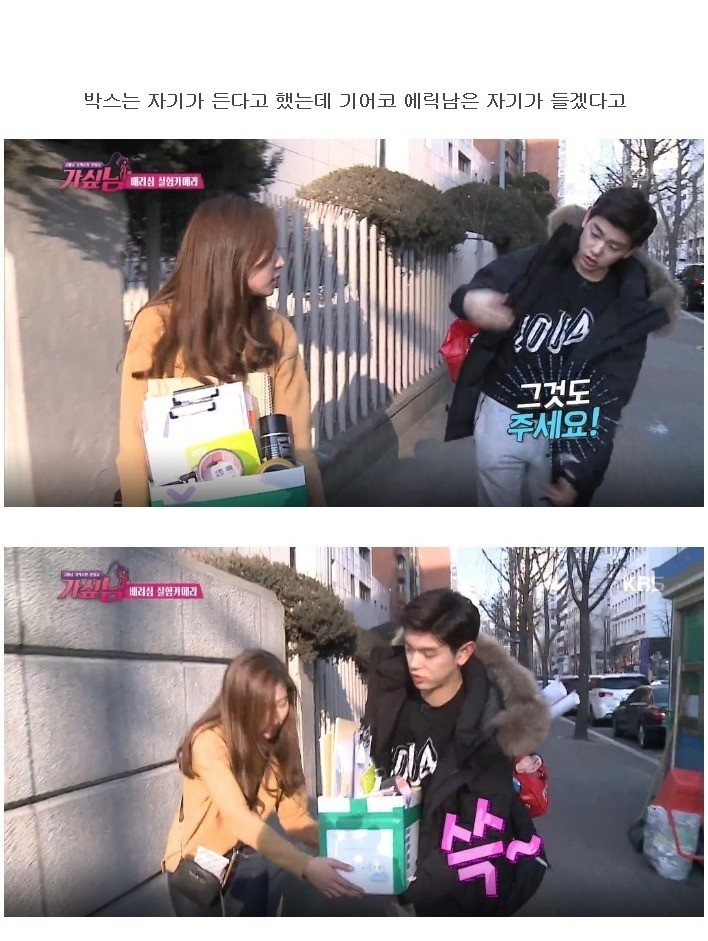 She insisted on carrying the box but Eric Nam carries it anyways.