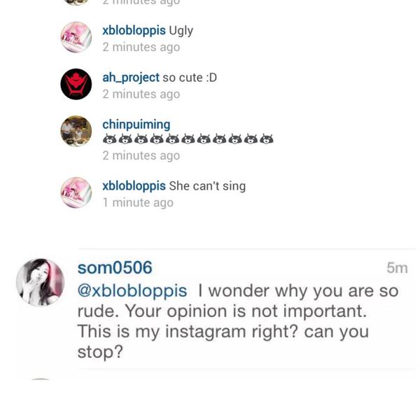 In response, Dasom wrote in English, “I wonder why you are so rude. Your opinion is not important. This is my Instagram right? Can you stop?”