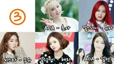 3. AOA‘s Choa, AOA’s Seolhyun, Girl’s Day‘s Yura, Girl’s Day‘s Hyeri, and SISTAR‘s Soyou