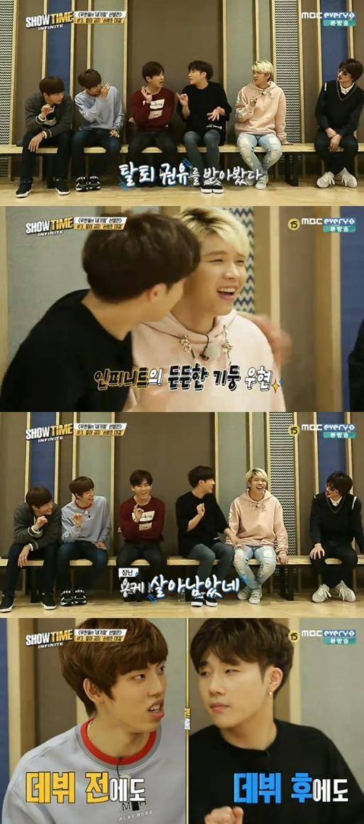 During “INFINITE Show Time” the members played a game revealing each other’s unique experiences. During the game Sungkyu said “If you’ve ever been suggested to leave the group by the CEO fold one finger”, to which Dongwoo and Woohyun folded their fingers. Dongwoo revealed that he’s heard the suggestion on more than one occasion.