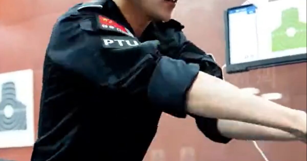 A stunning Chinese police officer has captured online attention after hitting every single one of her 10 targets.