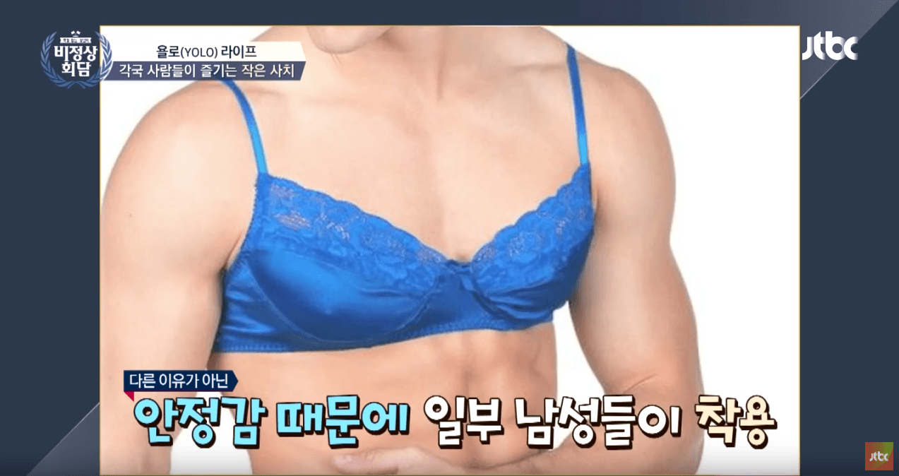 In a recent episode of JTBC‘s global guest talk show, Non-Summit, Japanese panel member Ogi Hitoshi revealed that men’s brassieres were becoming a trend popular in Japan.