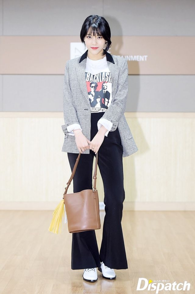 Hyejeong poses confidently in her stylish throwback outfit that is appropriate for work too!