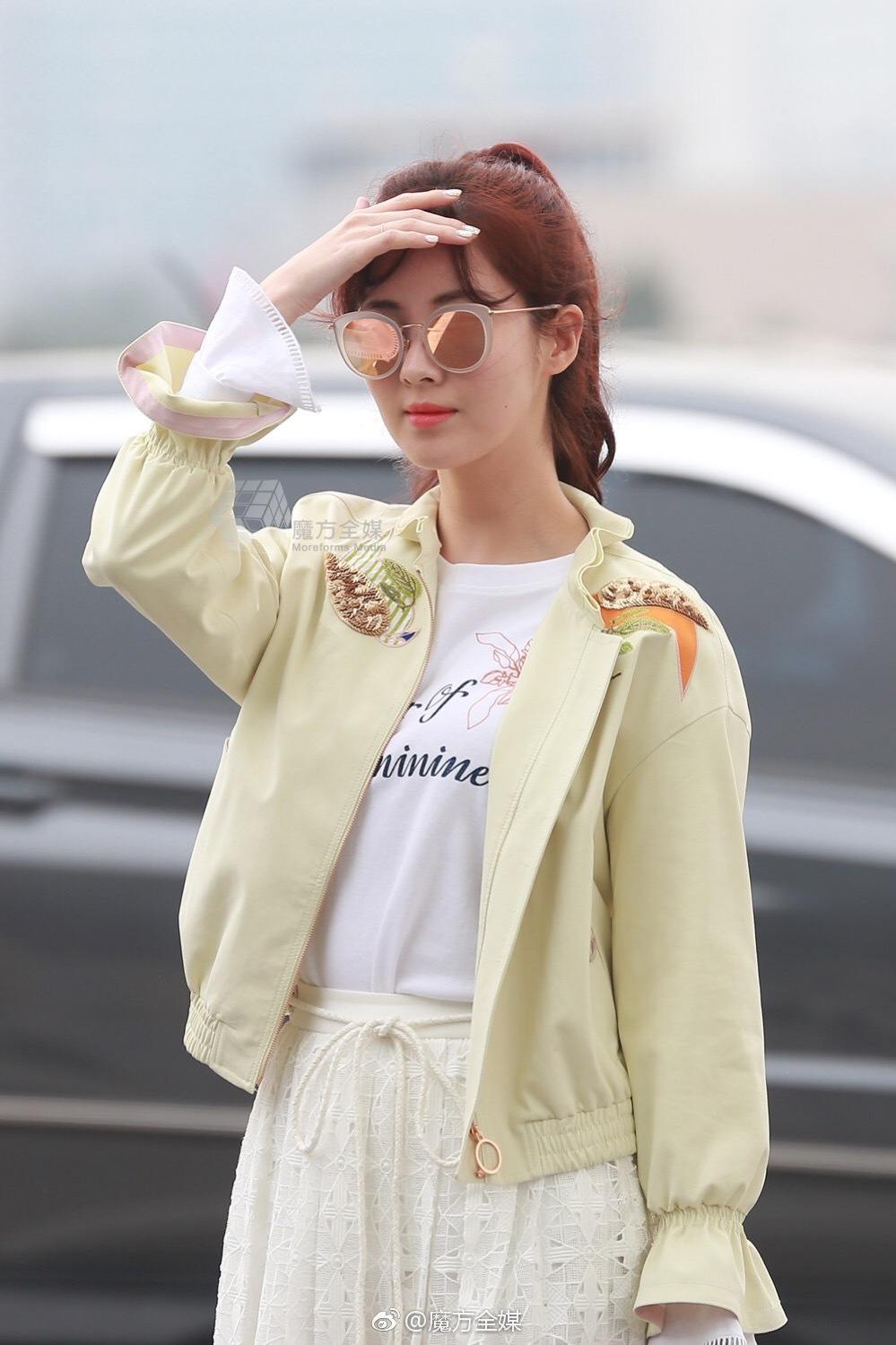 Recently at the Incheon airport, Seohyun showed off her cool and chic vintage style. From her tousled ponytail to her cute bow-tied shoes, Seohyun looks like a 80’s style diva.
