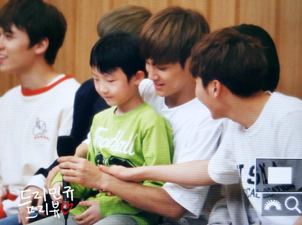 This poor tired kiddo just couldn’t stay awake any longer. Luckily, Minhyuk was there to carry him! Sleepy kid + Minhyuk = adorable!