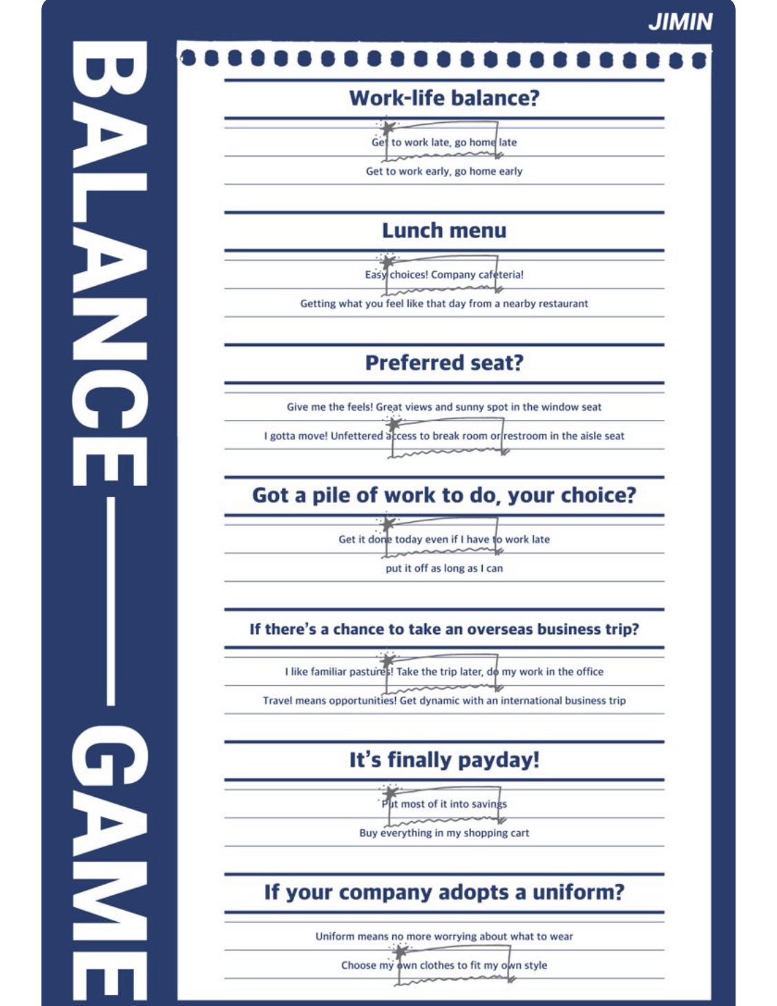 BTS ARMY, it’s time to put your knowledge to the test! Recently, each BTS member answered questions for a new Q&A “Balance Game.” Can you guess Jimin‘s answers?