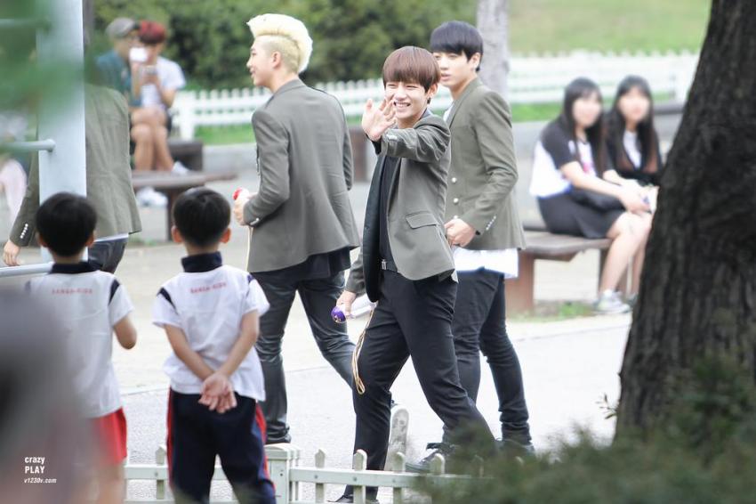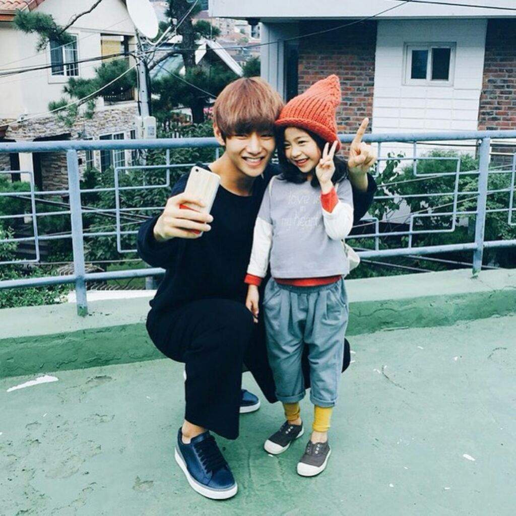 V needs to take selfies with any child that he sees.