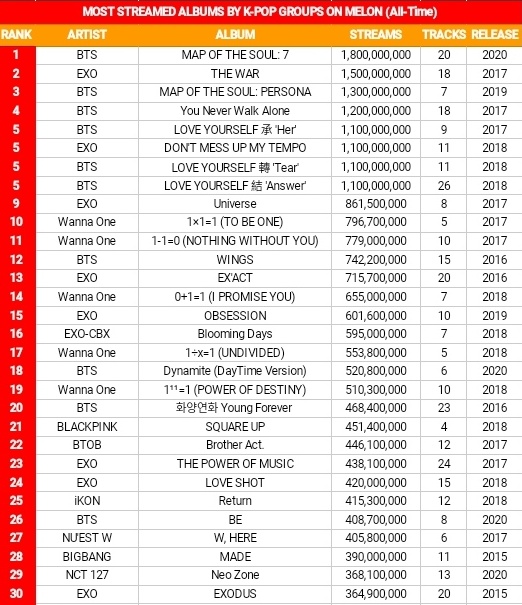 The 25 Most-Streamed K-Pop Albums On MelOn Of All Time
