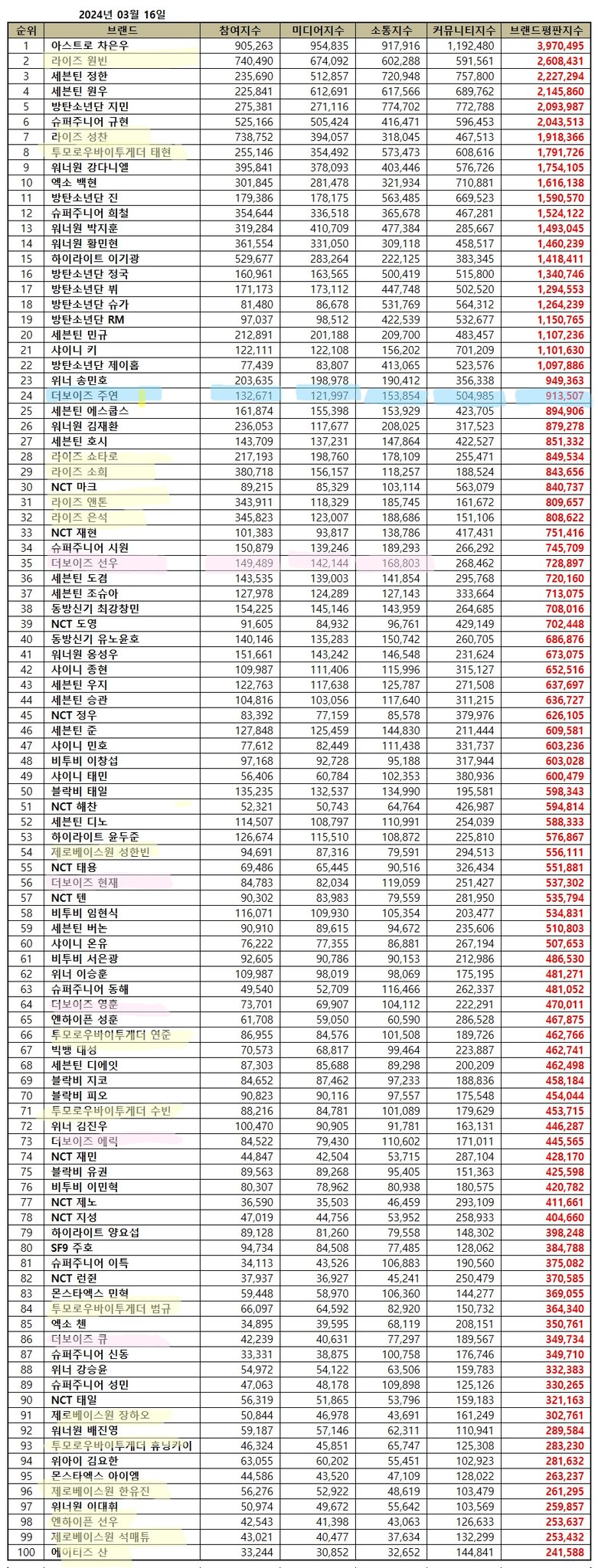 Juyeon received a total of 913,507 brand reputation index points for the month of March!