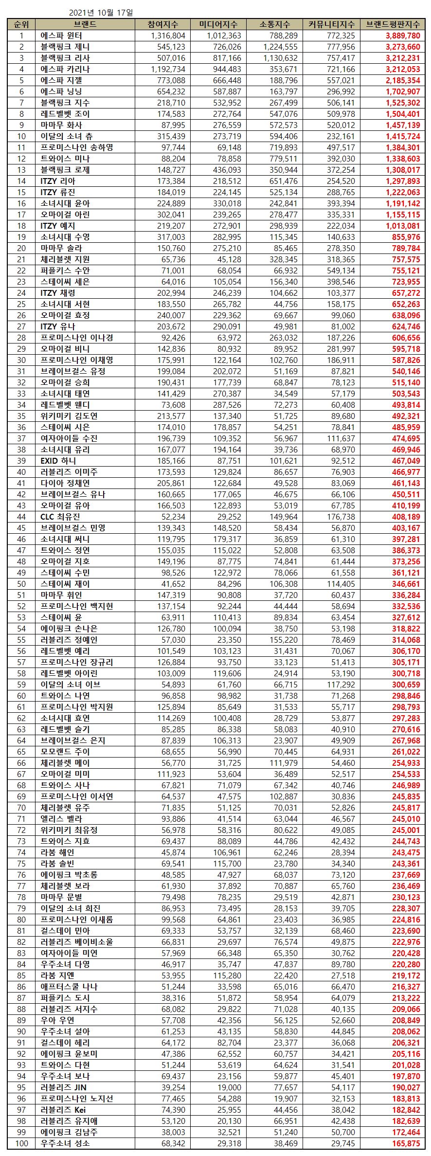 Congratulations to Winter and the other idols who made the list! Check out the brand reputation rankings for girl groups this month below.