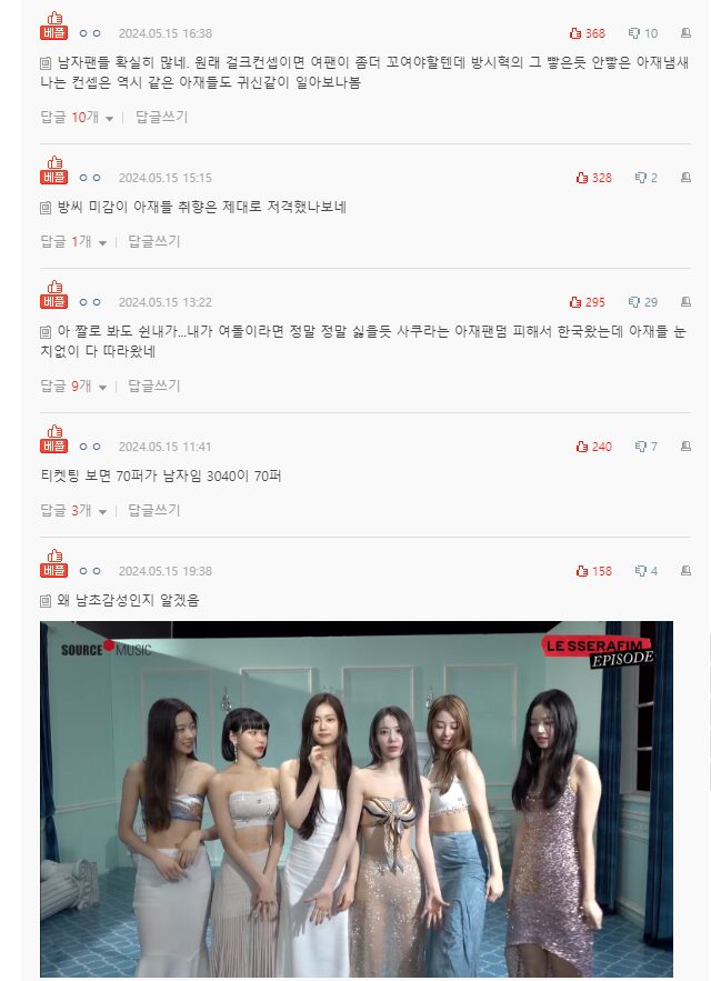 • “I can smell the picture just by looking at it… If I were a female idol, I would hate it so much. Sakura came to Korea to avoid the old men demographic, but they followed her without taking the hint.”