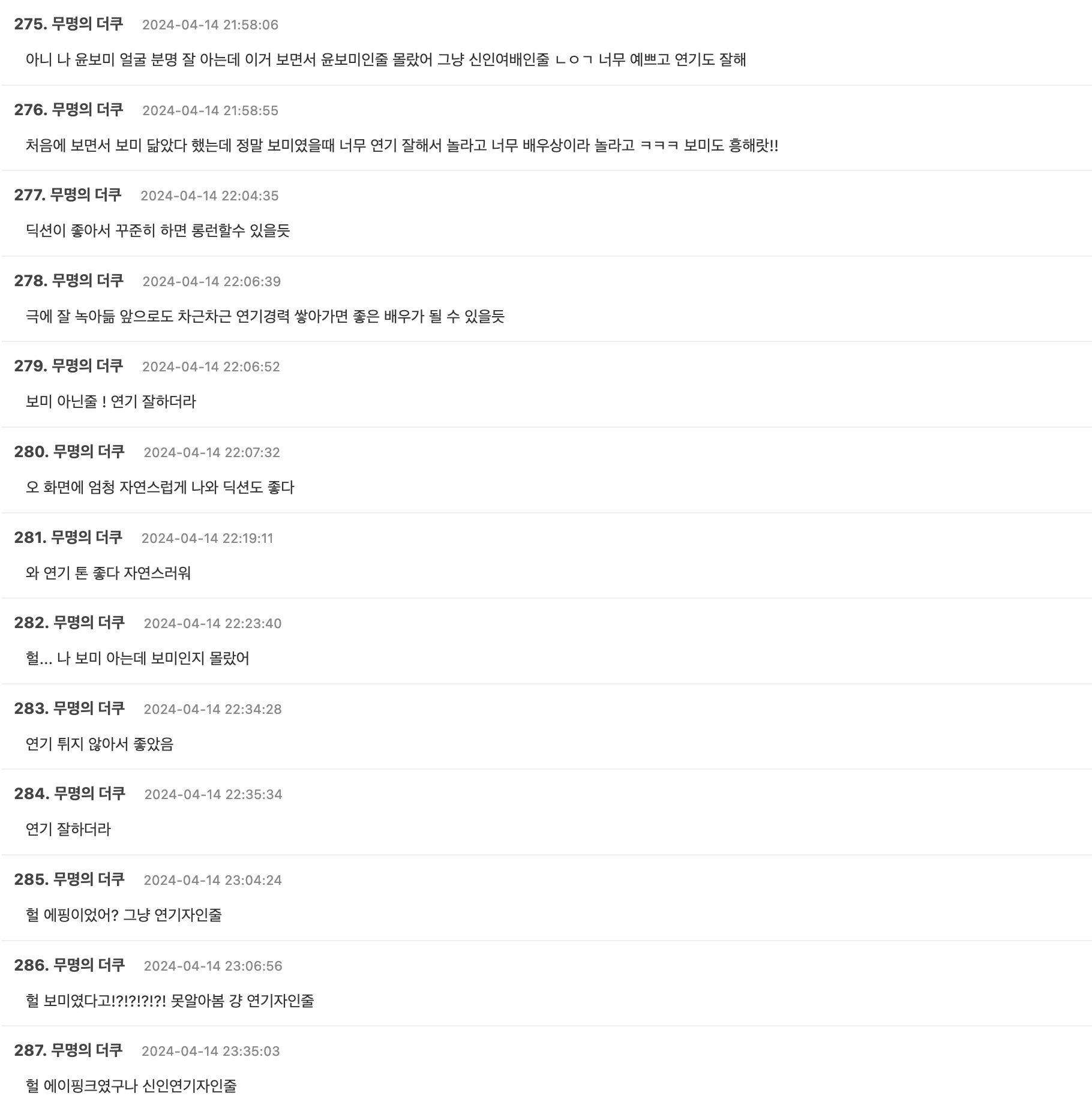 - “Bomi blended into her character quite well. I hope she keeps working on building her acting career. She’ll become such a successful actress.”