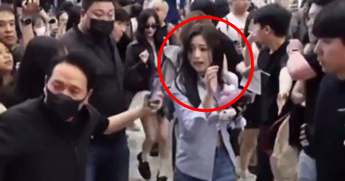 The girls drew a huge crowd that created a chaotic situation. Luckily, the staff formed a human chain to allow the members to pass through safely.
