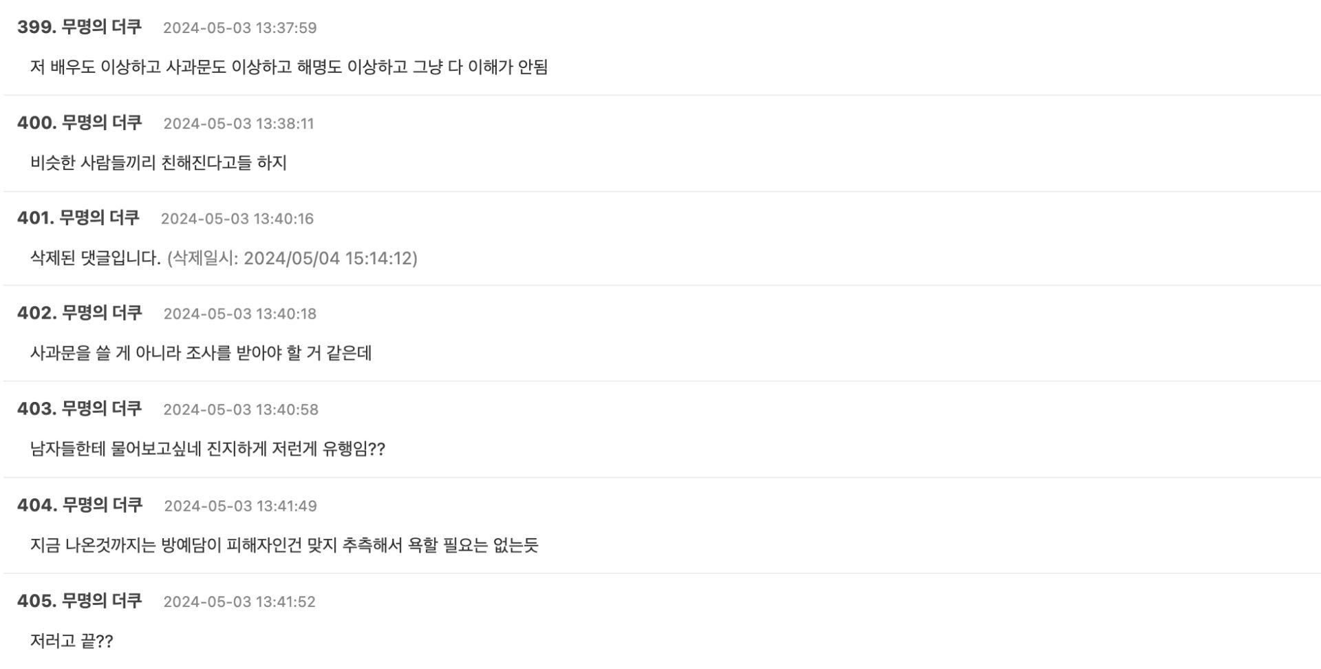 Its apologetic nature, though, has led to speculations about Bang Yedam’s involvement in the illegal filming. Koreans are wildly divided in their opinions. Some are questioning Bang Yedam’s unwillingness to report to the police when his personal space has been used in a potential crime…