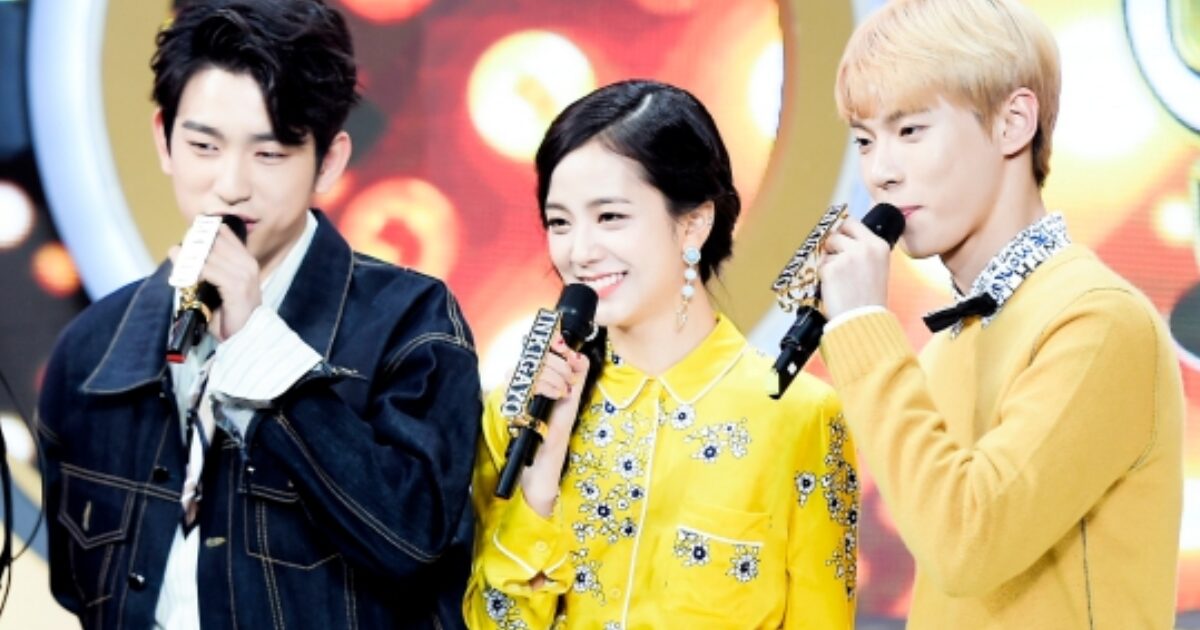A recent photo seemingly shows former Inkigayo hosts GOT7‘s Jinyoung, BLACKPINK‘s Jisoo, and NCT‘s Doyoung reunited.
