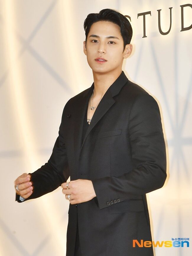 Mingyu also looked phenomenal in a simple black suit, black tank top, and silver accessories.
