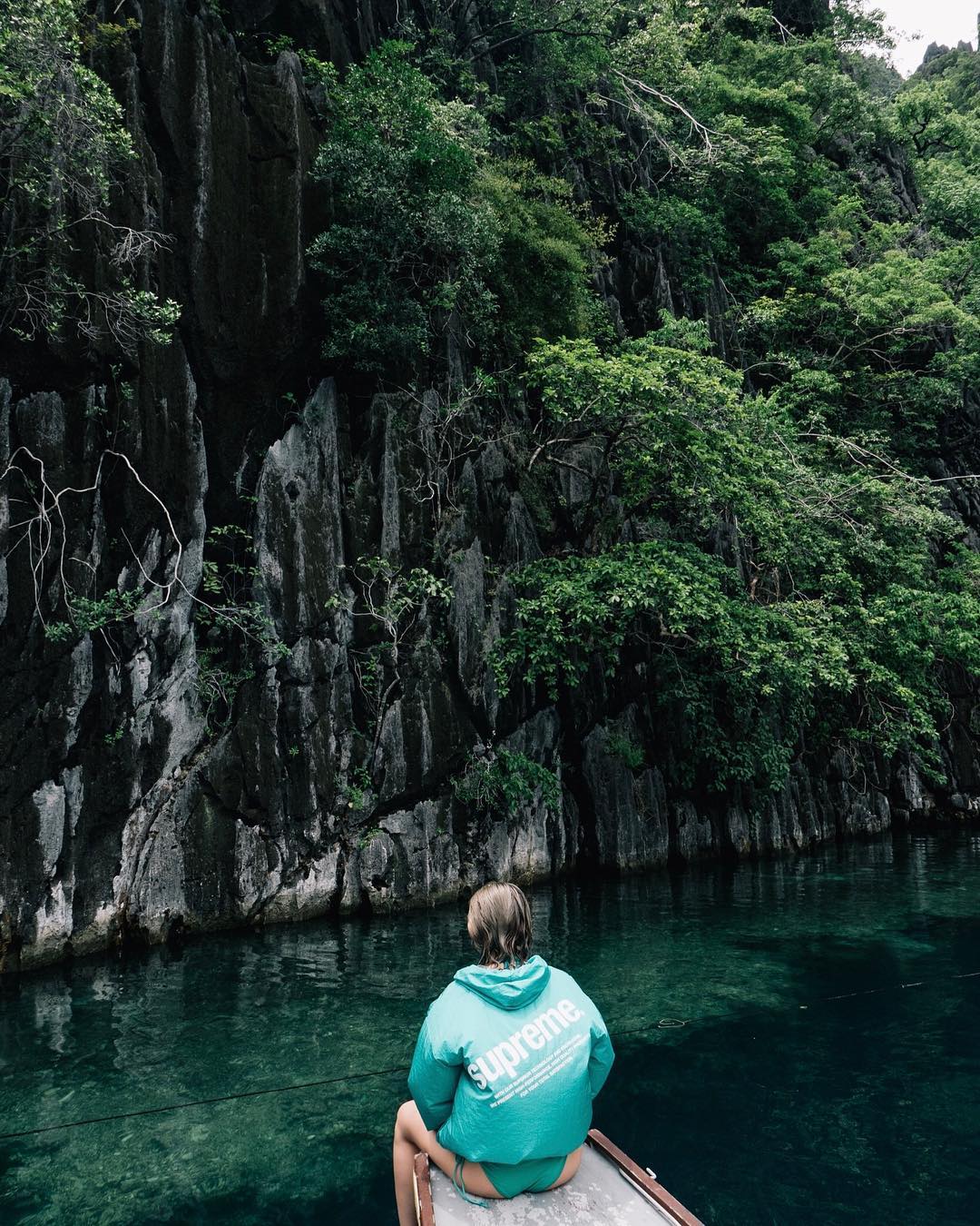 The photos appear to be of CL on vacation in the province of Palawan, Philippines.