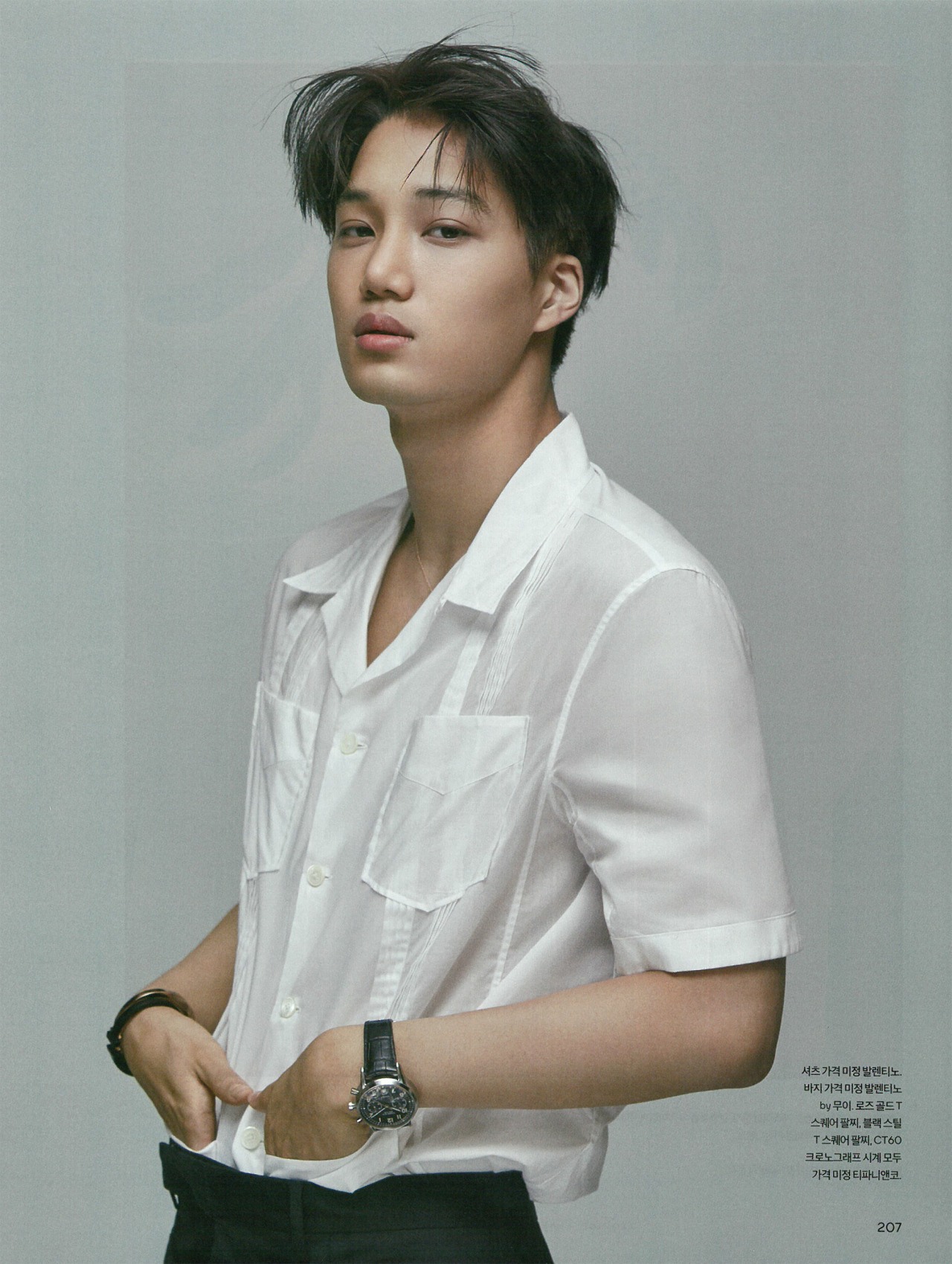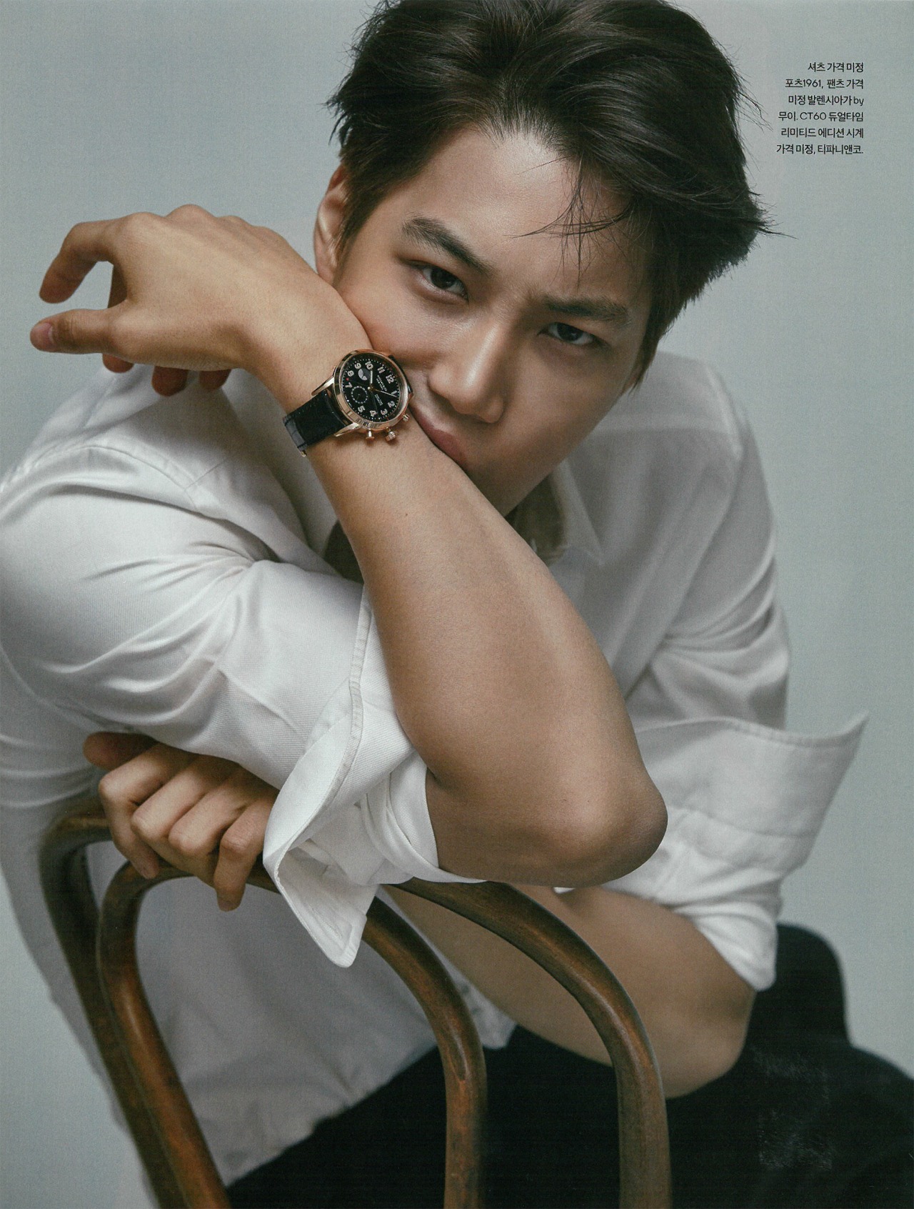 EXO‘s Kai is featured on the front cover of the popular men’s magazine Esquire‘s February Issue. Kai candidly poses for the camera in a simple outfit and unveils his manly side. Although the color scheme of the shoot is monotone, Kai shines brightly in the images and charismatically models for a wide variety of men’s accessories in a fitted suit.