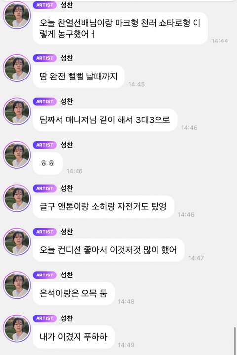I played basketball with Chanyeol, Mark, Chenle, and Shotaro today until I was sweating. We played three on three, including our manager. I also rode bikes with Anton and Sohee. I did a lot today because I was in good condition. I also played ‘five in a row’ with Eunseok. I won hehe.