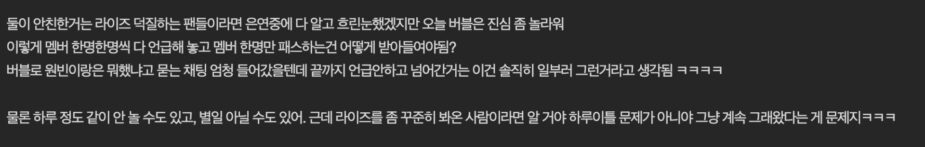 “Obviously, they aren’t on good terms, but if they are putting in effort, I’m sorry. I’m not saying you should force yourself to become close to someone you’re not close to, but as idols, shouldn’t they be able to hide it? Even in behind-the-scenes or Bubble messages, it looks like they are blatantly saying, ‘I don’t like this person. ’