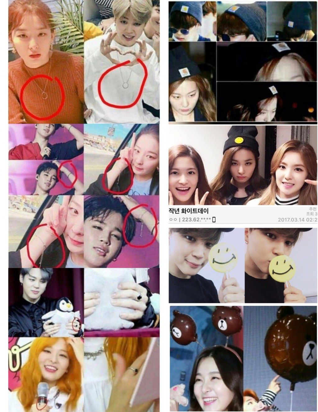 Claims: The most common piece of “evidence” shared by those who believe Jimin and Seulgi are dating can be found in photos. People claim that the two take extremely similar selfies, where they are often seen winking or using the same filters.