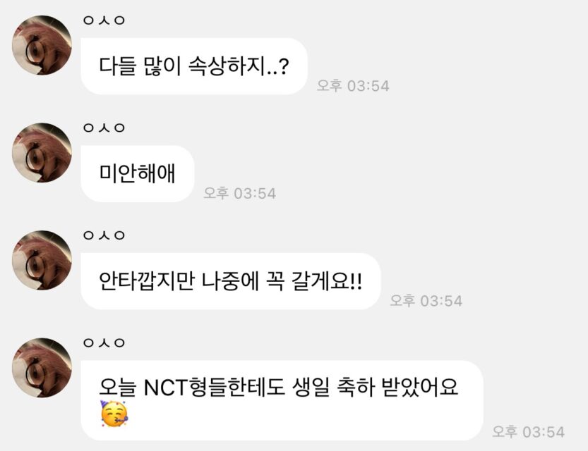 Everyone must be so disappointed…? I’m sorry. It’s unfortunate but we’ll definitely go later!! I also received birthday wishes from NCT-hyungs today.