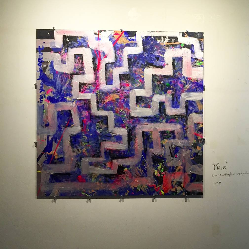 “Maze” was drawn on a mirror as a canvas and depicts what appears to be a maze, as its title suggests.