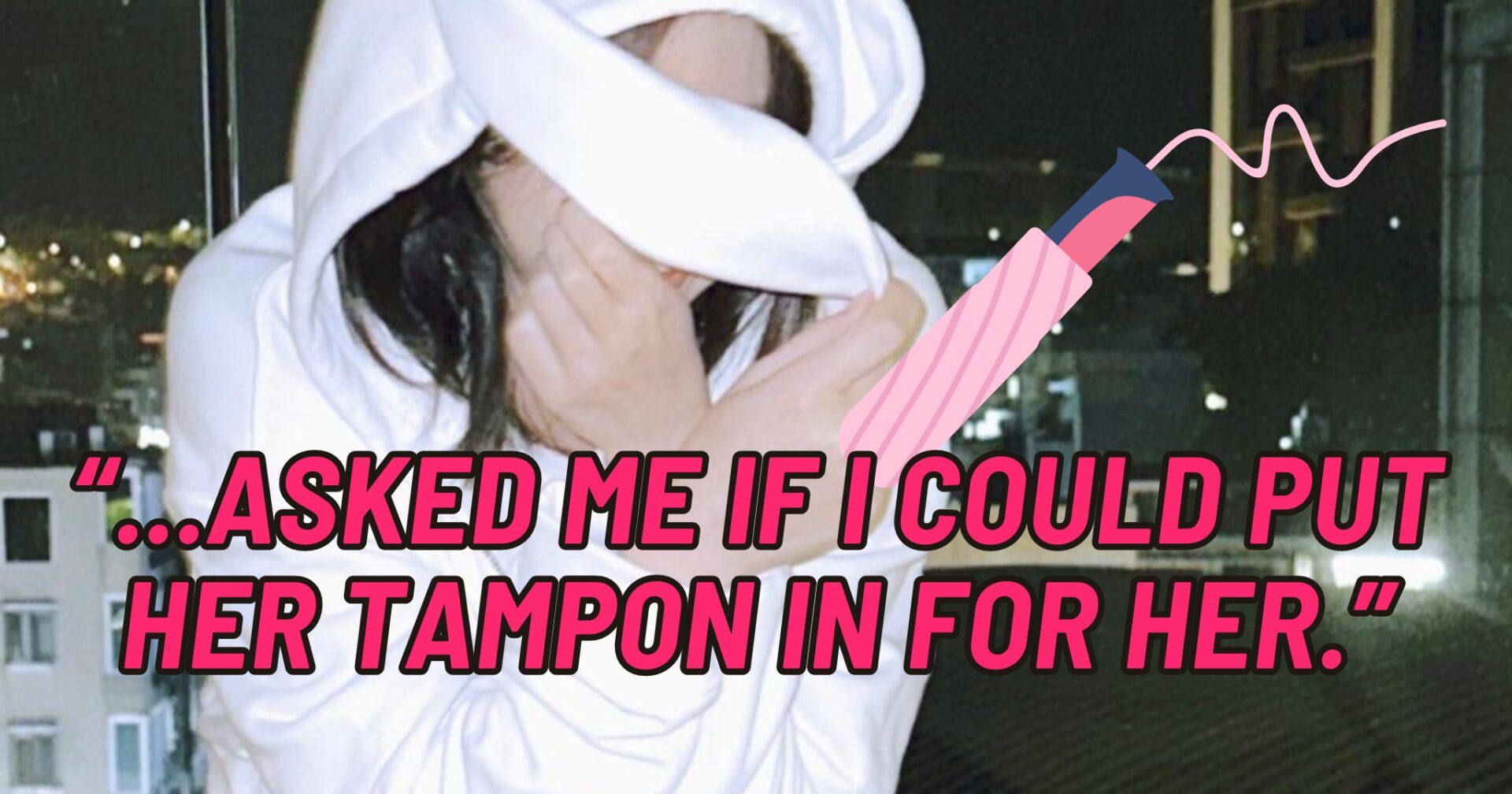 So, when I was a trainee, this girl was on her period and she needed to move, obviously, so she came up to me and asked me if I could put her tampon in for her, and to that, I was like, ‘Yes, I will put your tampon in for you.’