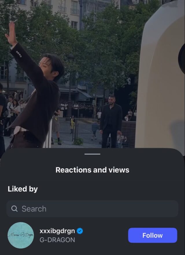 On a post showing J-Hope’s arrival at the actual Louis Vuitton show, netizens discovered that G-Dragon liked the video.