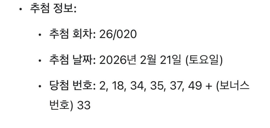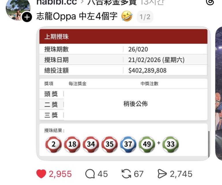 The lottery was held on February 21, with the winning numbers 2, 18, 34, 35, 37, 49, and the bonus number 33.
