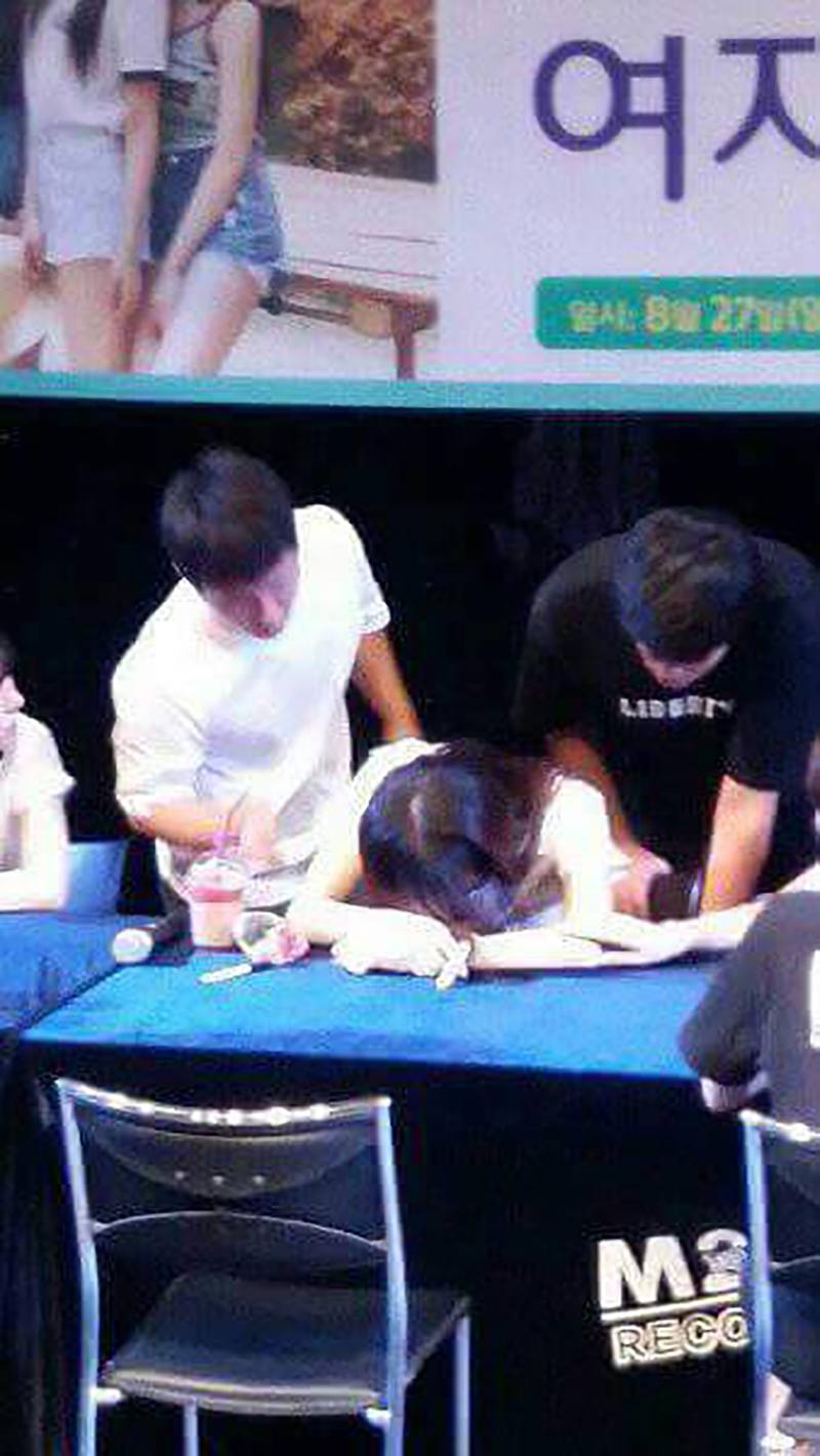 A video taken at the event showed Yuju lying down on the signing table in pain.