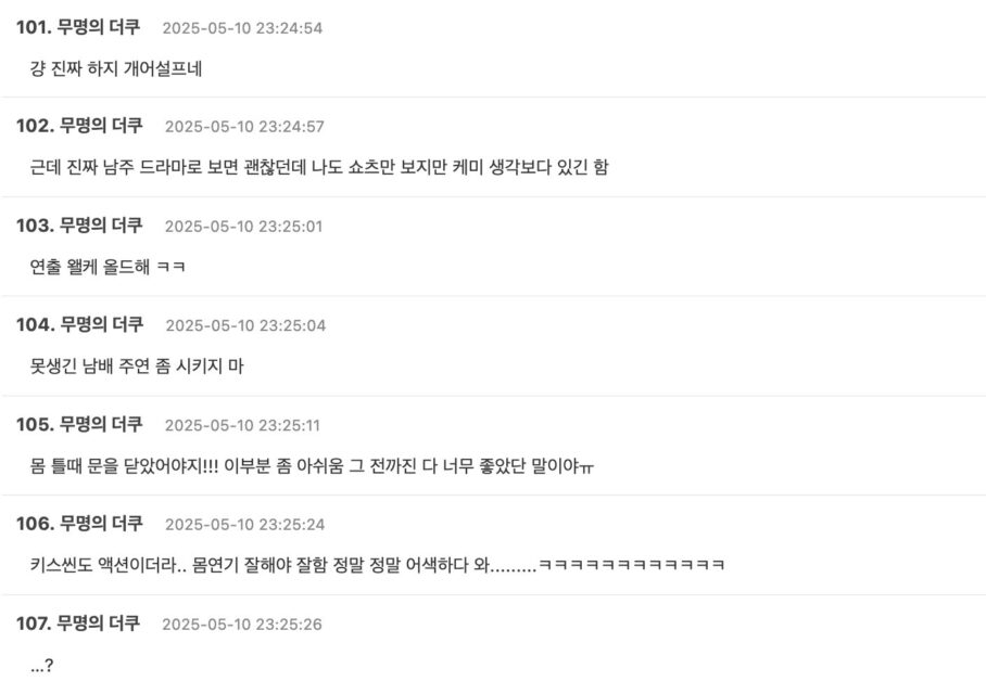 - “What was that? LOL. Why was he moving so awkwardly? It felt like a comedy skit pretending to do a kiss scene.”