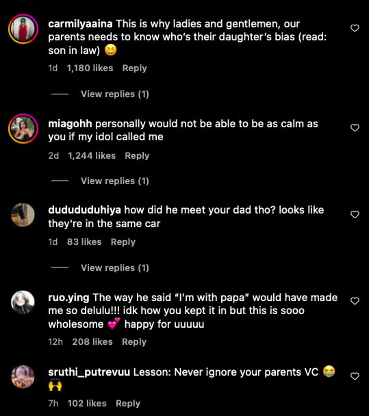 Fellow fans are taking away two critical lessons: make sure your parents know of your favorite idols, and never ignore your parents’ calls! You just might miss the opportunity to speak with your bias.