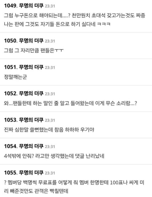 - “Then whose money are they supposed to use…? It’s already annoying that they’re taking seats worth ten million won, and now they’re saying they don’t even want to pay for them themselves, lol.”