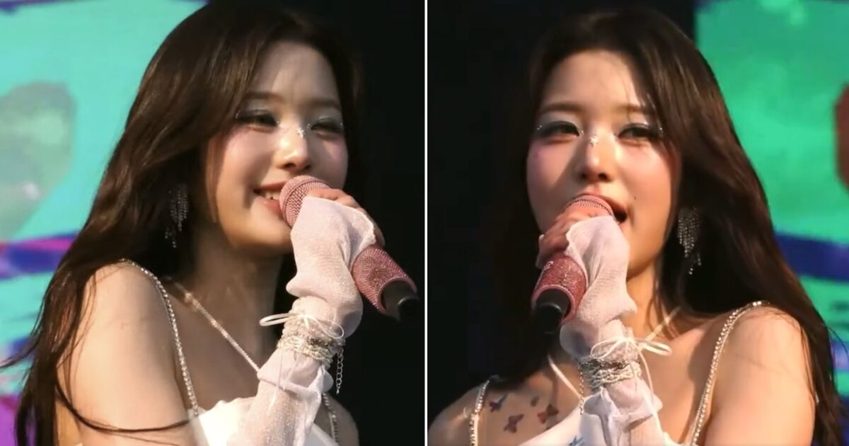 IVE‘s Wonyoung reacted to her microphone being lowered during a performance.