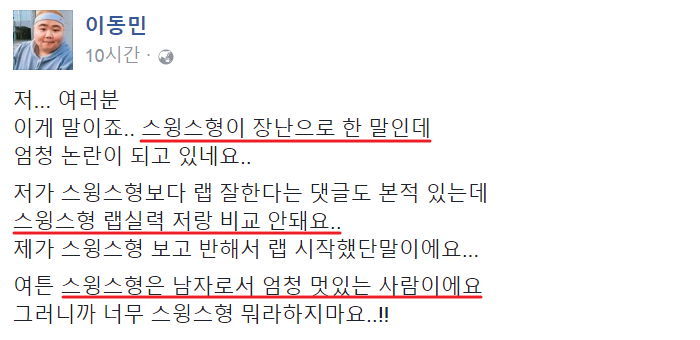 So please don’t criticize Swings so much..!!”— Lee Dong Min