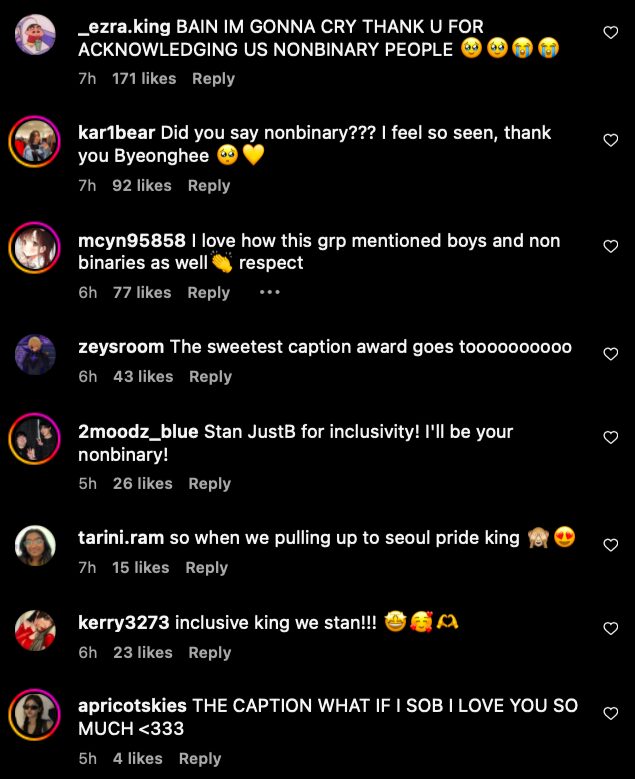 Netizens flooded the comment section of the post with praise. Fans commended Bain for his inclusiveness. Even if idols share Bain’s views personally, most don’t explicitly or publicly acknowledge everyone as he did.