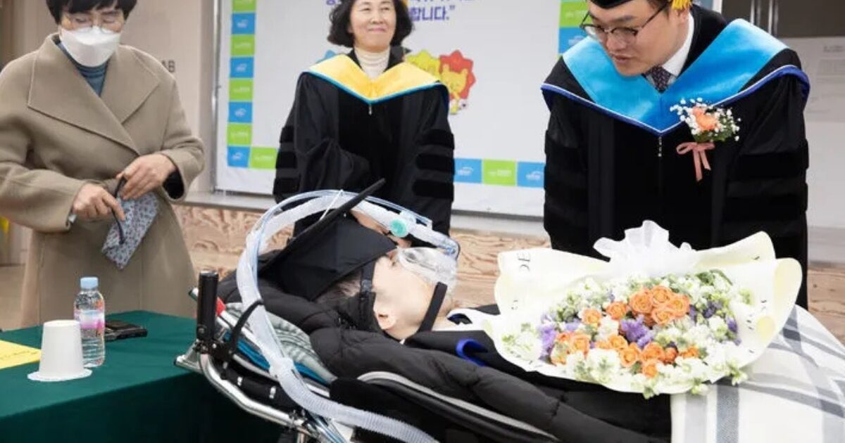 A South Korean student with muscular dystrophy has achieved an incredible feat by completing his master’s degree despite most of his body being paralyzed.