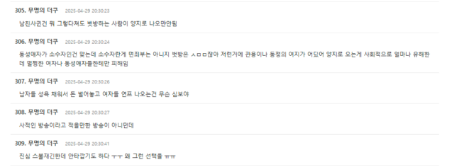 Despite the vulnerability and remorse expressed in her letter, the public response has been largely unforgiving. Many Korean netizens questioned her motives, criticized her decision to appear on a mainstream dating show, and expressed concern about how her past could negatively impact perceptions of the LGBTQ+ community.