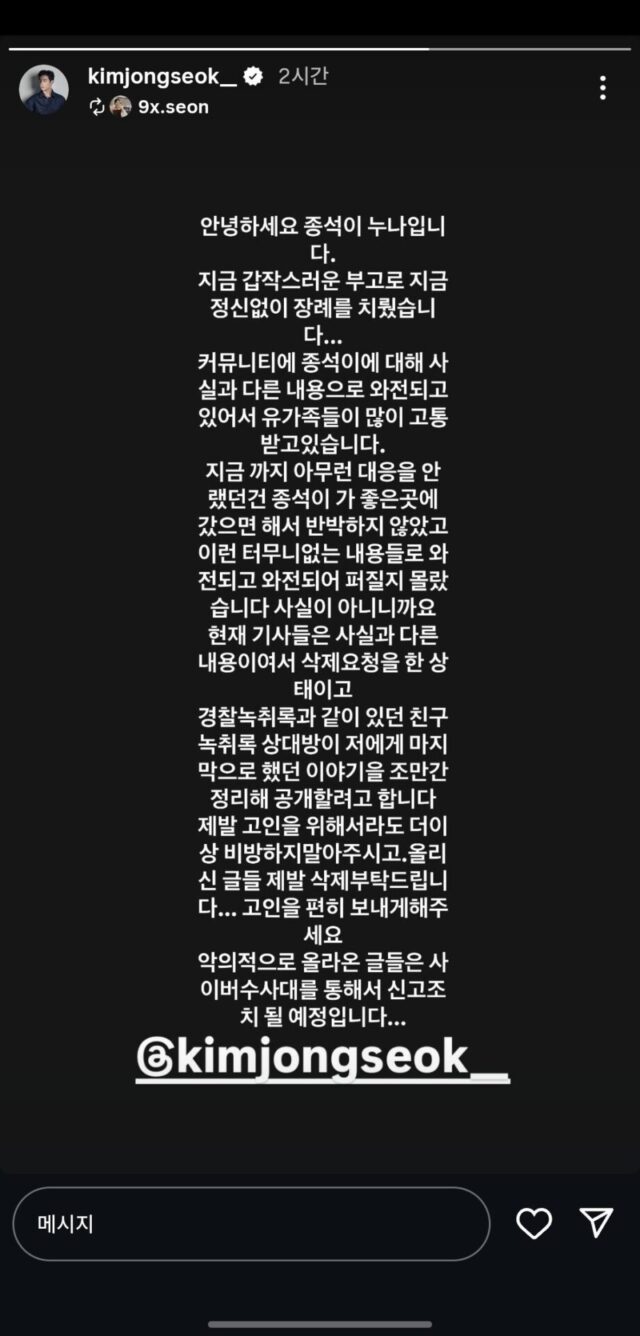 Kim’s sister also mentioned that her family was planning to pursue strict legal action against malicious posts about her brother.