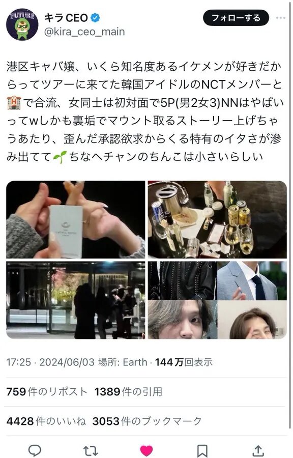 Recently, NCT’s Haechan and Johnny have been accused of sleeping with three girls. An X user, well-known in the Japanese nightlife industry, posted alleged photos of the hotel and room key the members stayed in.