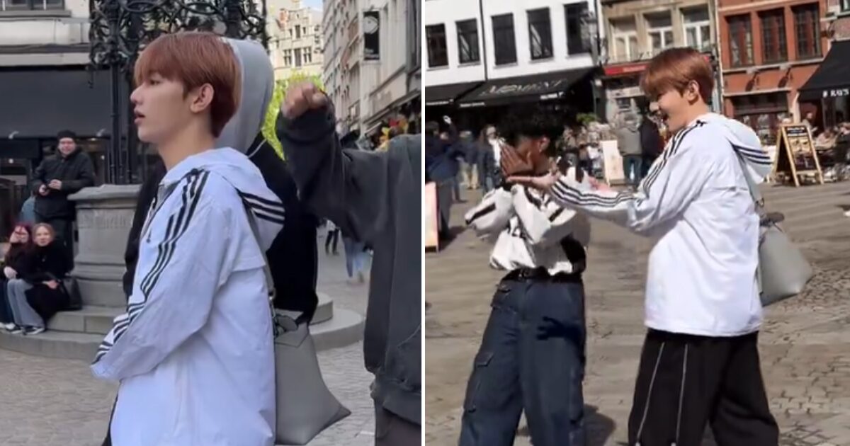 However, one netizen went viral after filming a dance challenge on the street… just to be joined by the idol who sang the song, which in this case was ZEROBASEONE‘s Zhang Hao.