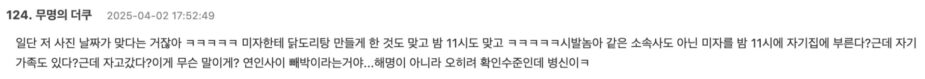 - So basically, that photo’s timestamp is accurate, right? LOL. So he really made a minor cook Spicy Chicken Stew, and it was really at 11 PM? LOL, you bastard. Calling a minor—who isn’t even from the same agency—to his house at 11 PM? And his family was supposedly there? And they spent the night? What does that sound like to you? It’s basically undeniable that they were in a relationship. This isn’t a clarification—it’s a confirmation, you idiot. LOL.