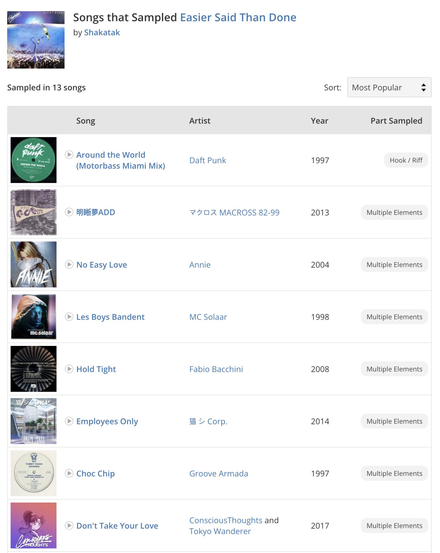 Go to www.whosampled.com/Shakatak/Easier-Said-Than-Done/sampled/ and see for yourself how many songs have sampled Shakatak’s original. Keep in mind there must be plenty more not listed on the said website as well. Also, there is a high chance that the song has not even been sampled at all.