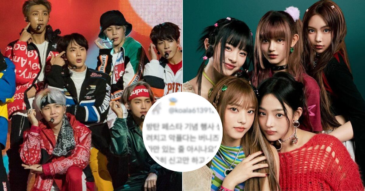 On July 1, Twitter user @koala613912 posted about the alleged behavior of some NewJeans fans during a recent BTS livestream.