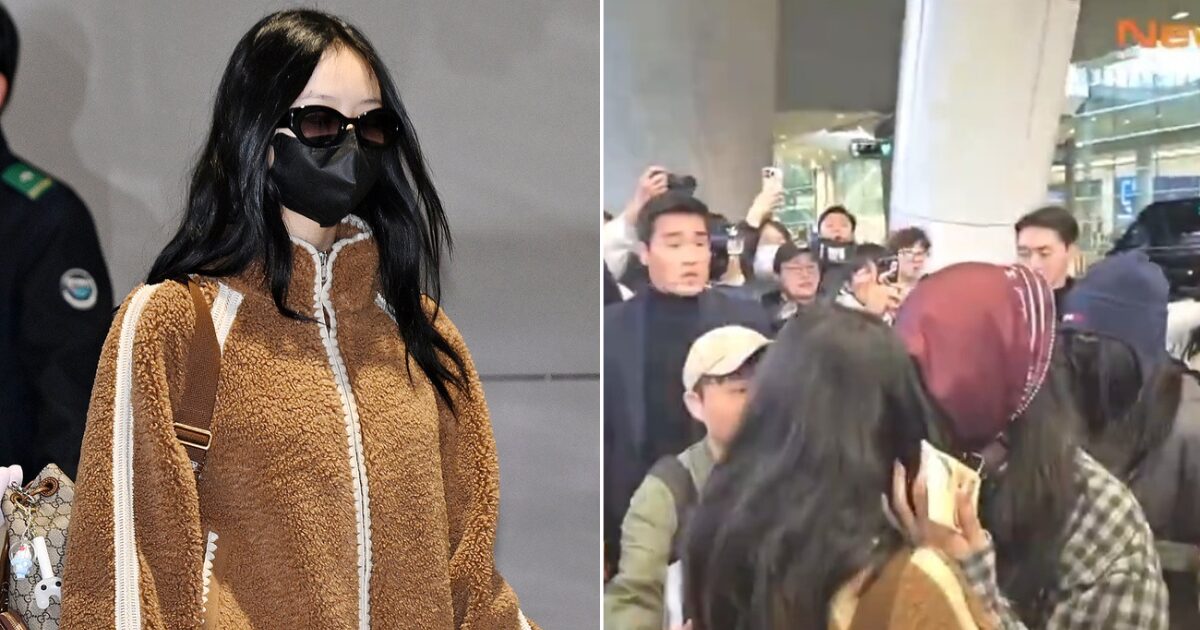 A large crowd consisting of press and fans was gathered at the airport greet the members. As they made their way to the gates, a huge crowd rushed toward them. In the midst of the chaos, Hanni suddenly appeared extremely upset and had to turn aroun, away from the cameras, to collect herself.