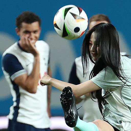 Minji’s kick, in particular, received quite the attention as she delivered it with unexpected power. As the ball flew across the field, the audience could be heard breaking into a startled roar and applause. Thomas Müller even applauded her kickoff skills.