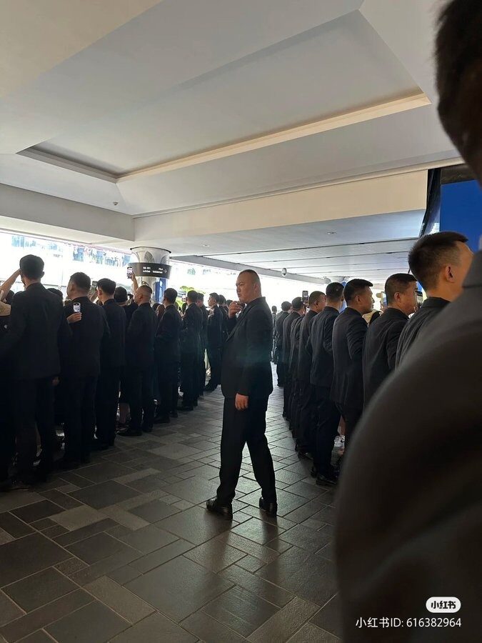 On June 6, The8 attended an event for the brand KOLON in China. Before it even started, netizens were shocked as they saw a line of 200 bodyguards walking towards the event venue.