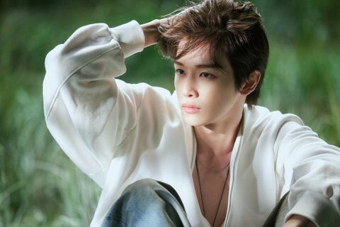 In some of the pictures, Sungchan is wearing an open jacket that gives a clear view of his well-defined abs and chiseled chest.